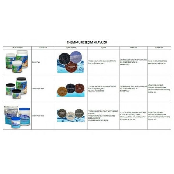 Chemi-pure 60 yılı aşkın bir süredir devrim niteliğinde bir ürün olmaya devam ediyor ve neredeyse tüm akvaryum filtre malzemeleri buna göre modelleniyor! Büyük veya küçük akvaryumlarda Chemi-pure, güzel ve sağlıklı bir akvaryumun bakımını kolaylaştıran tutarlı sonuçlar üretir.