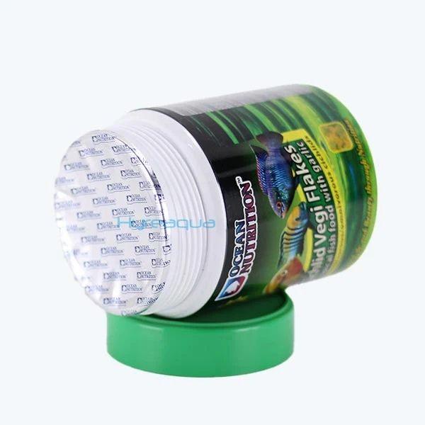Ocean Nutrition Cichlid Vegi Flakes; Zengin vitamin ve sarımsak özleri içerir.