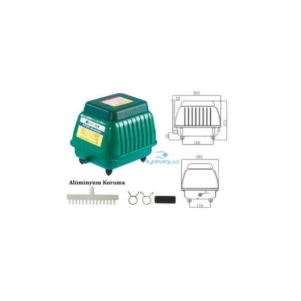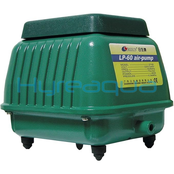 Resun LP-60 Düşük Sesli Hava Kompresörü; Büyük akvaryumlar için dakikada 70 litre hava pompalayan, akvaryumların yanı sıra büyük su tankları ve bahçe havuzları, yapay havuz için de kullanılabilen,oksijen sağlamanın yanında, suda doğal bir dalgalanma yapan ve suyun sirkülasyonunu sağlayan,50 watt gücünde; tek çıkışlı hava pompasıdır.