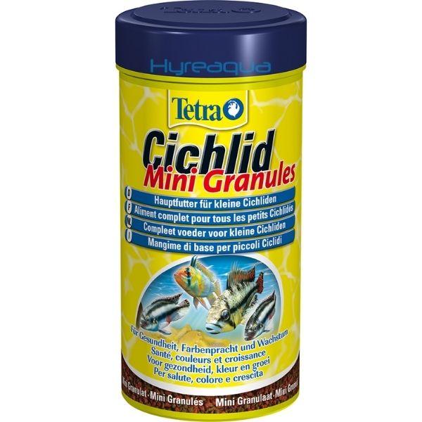 Tetra Cichlid Mini Granules; Mükemmel sindirilebilirlik, suyun temiz kalmasına ve daha iyi su kalitesinin sağlanmasına yardımcı olur.